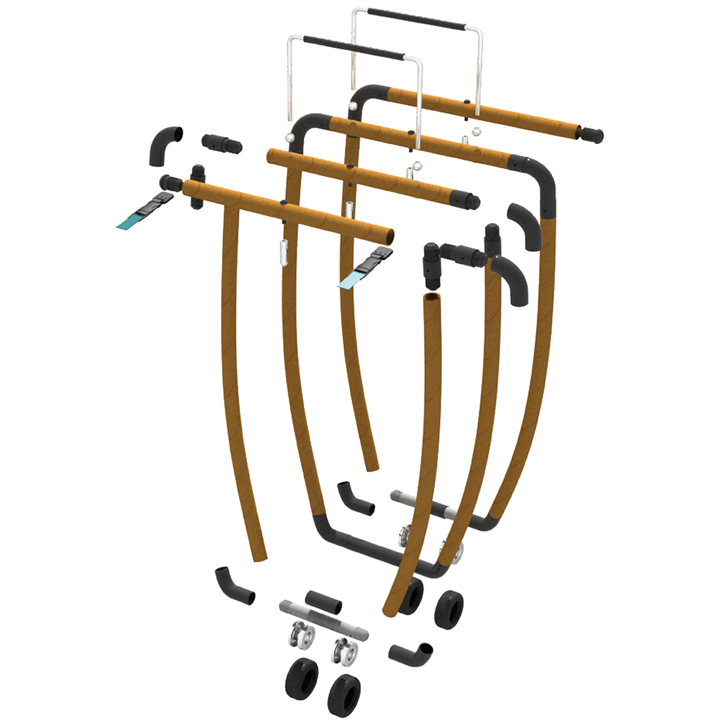 Main material is a recycled cardboard tube profile which is Ø 32mm and 1mm thick. The 32mm tube profiles has been filled with Ø 29 foam balls to resist the structure from any damage. All connecting parts can be connected together without any tools.